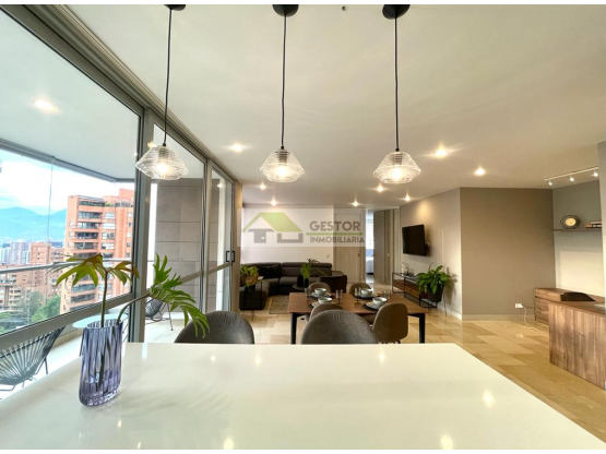 Apartamento amoblado en Arriendo ubicado en el Poblado sector La Linde, Cuenta con una hermosa vista, 3 habitaciones, la principal con baño, closet, aire acondicionado, estudio, baño social, zona de ropas, sala comedor, parqueadero, util, piscina, turco, sauna, salon social, cerca al parque del Poblado, Provenza, calle 10 y Av Poblado.